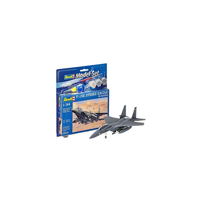 Maquette du Model Set de l'Avion Américain F-15E Strike Eagle & Bombs , Kit avec peinture, pinceau et colle de la marque REVELL à l'échelle 1/144