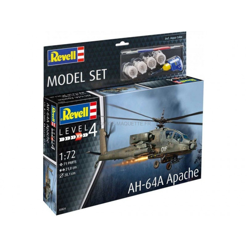 Maquette du Model Set de l'Hélicoptère Américain AH-64A Apache , Kit avec peinture , pinceau et colle de la marque REVELL à l'échelle 1/72
