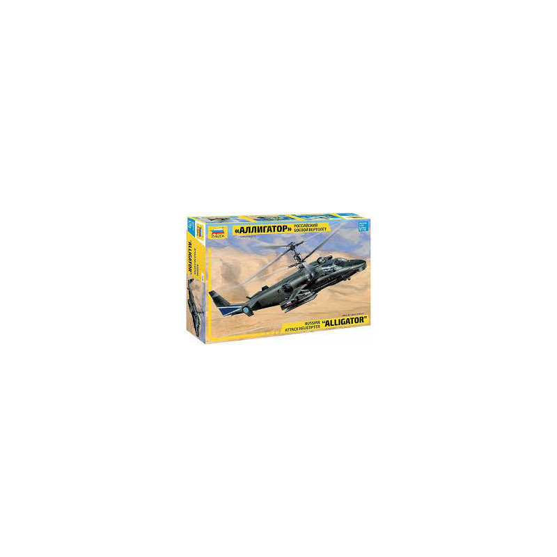 Maquette de l'Hélicoptère Russe KA-52 Alligator de la marque ZVESDA à l'échelle 1/72