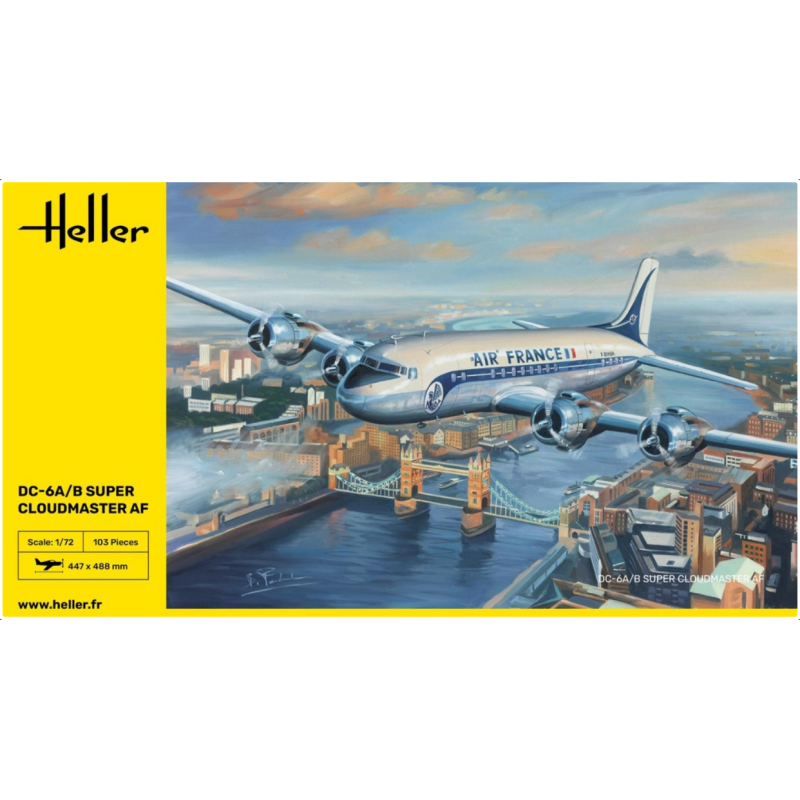 Maquette de l'avion Américain DC6 Super Cloudmaster en décoration AIR FRANCE de la marque HELLER à l'échelle 1/72