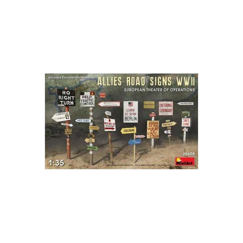 Maquette des Panneaux Routiers Alliés de la marque MINIART à l'échelle 1/35