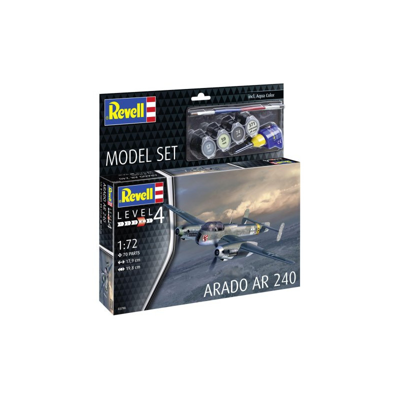 Maquette du Model Set de l'Avion Allemand Arado AR-240 , Kit avec peinture , pinceau et colle de la marque REVELL à l'échelle 1/72