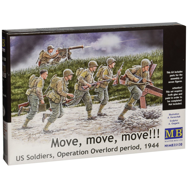 Maquette des Figurines MOVE MOVE MOVE US Infanterie Opération Overlord 1944 de la marque MASTERBOX à l'échelle 1/35