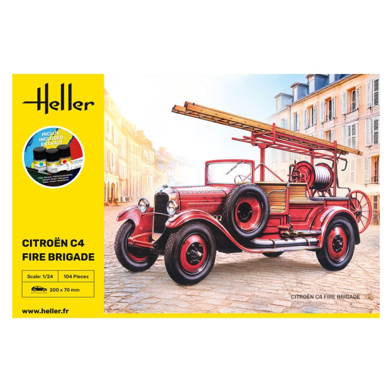 Maquette du Starter Kit de la Citroën C4 Fire Brigade , Kit avec peinture , pinceau et colle de la marque HELLER à l'échelle 1/24