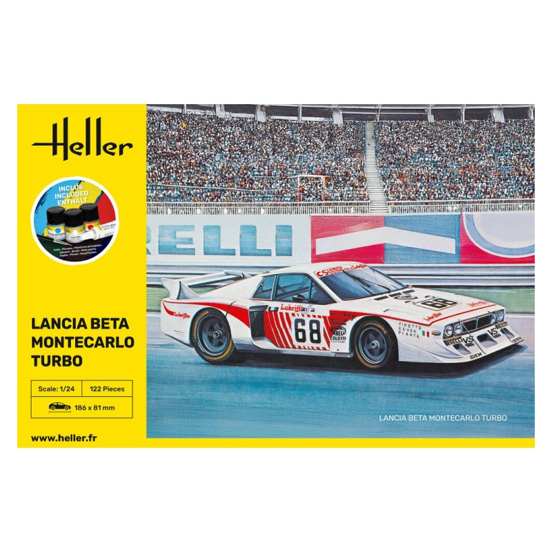 Maquette du Starter Kit de la Lancia Beta Montecarlo Turbo , Kit avec peinture , pinceau et colle de la marque HELLER à l'échelle 1/24