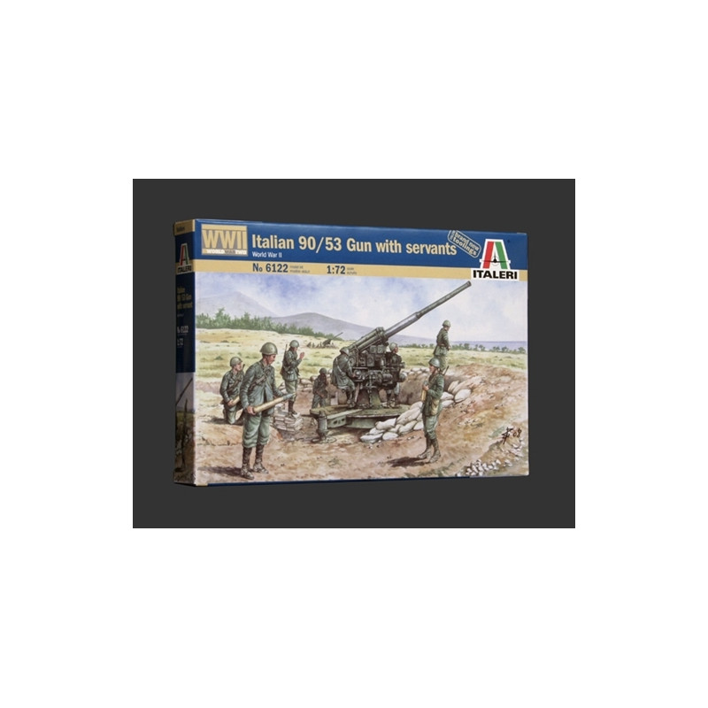 Maquette d'un Canon Itaien 90/53 avec personnages de la marque ITALERI à l'échelle 1/72