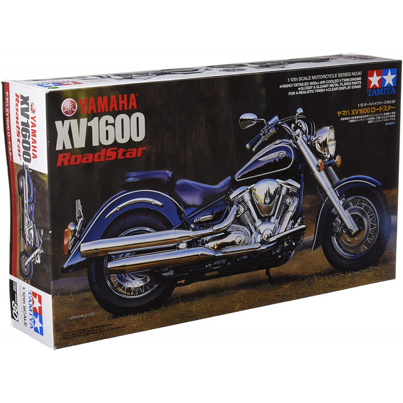 Maquette de la moto Yamaha XV1600 Roadstar de la marque TAMIYA à l'échelle 1/12