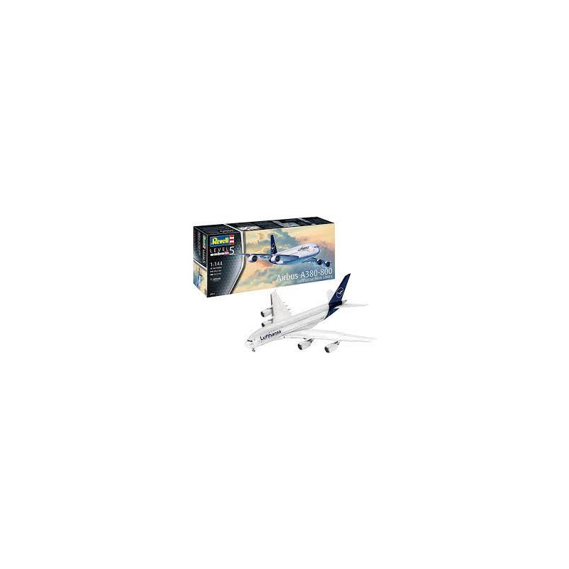 Maquette de l'avion Français Airbus A380-800 de la compagnie aérienne allemande Lufthansa dans sa nouvelle livrée de la marque REVELL à l'échelle 1/144