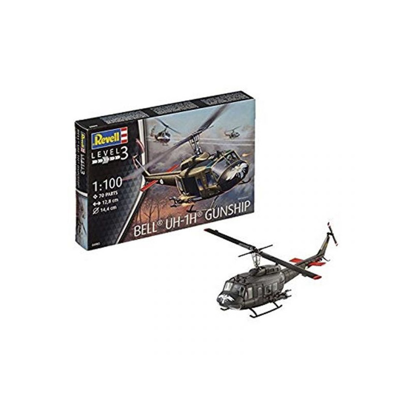 Maquette de l'Hélicoptère Américain Bell UH-1H Gunship de la marque REVELL à l'échelle 1/100