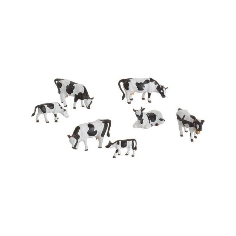 Boîte de 7 Animaux sur le thème des Vaches noir-blanc de la marque NOCH à l'échelle 1/87