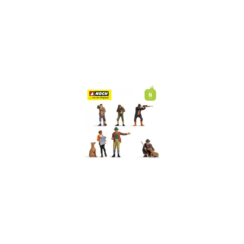 Boîte de 6 Personnages sur le thème des Chasseurs et gardes Forestiers de la marque NOCH à l'échelle N