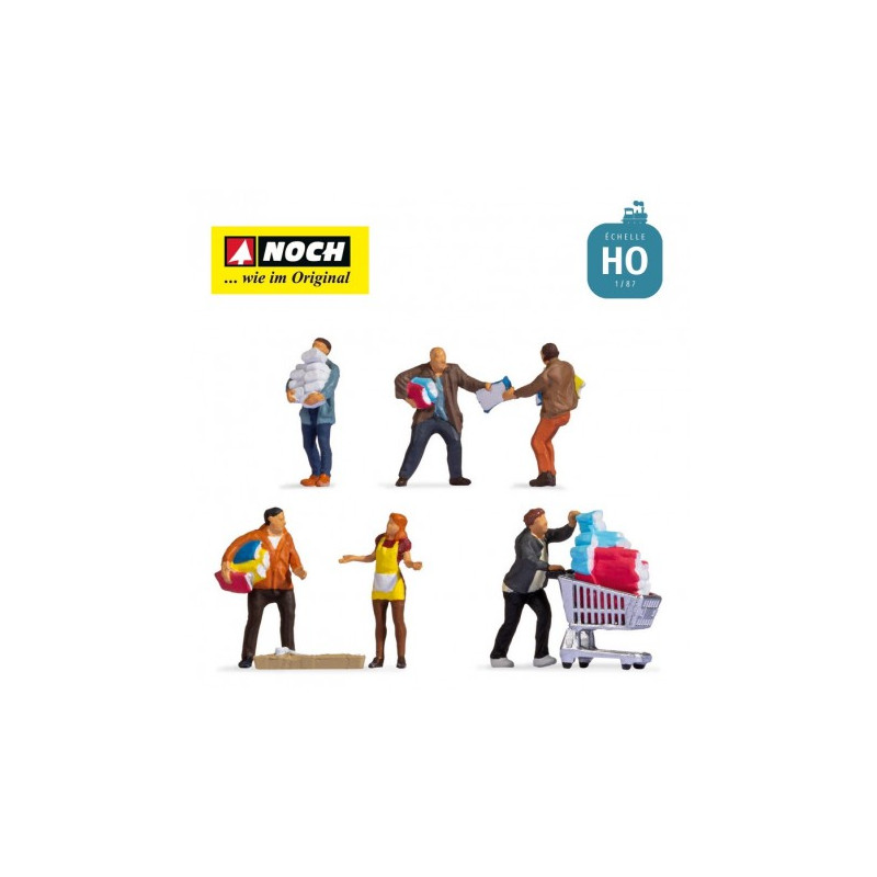 Boîte de 6 Personnages sur le thème de faire des achats de réserves de la marque NOCH à l'échelle HO