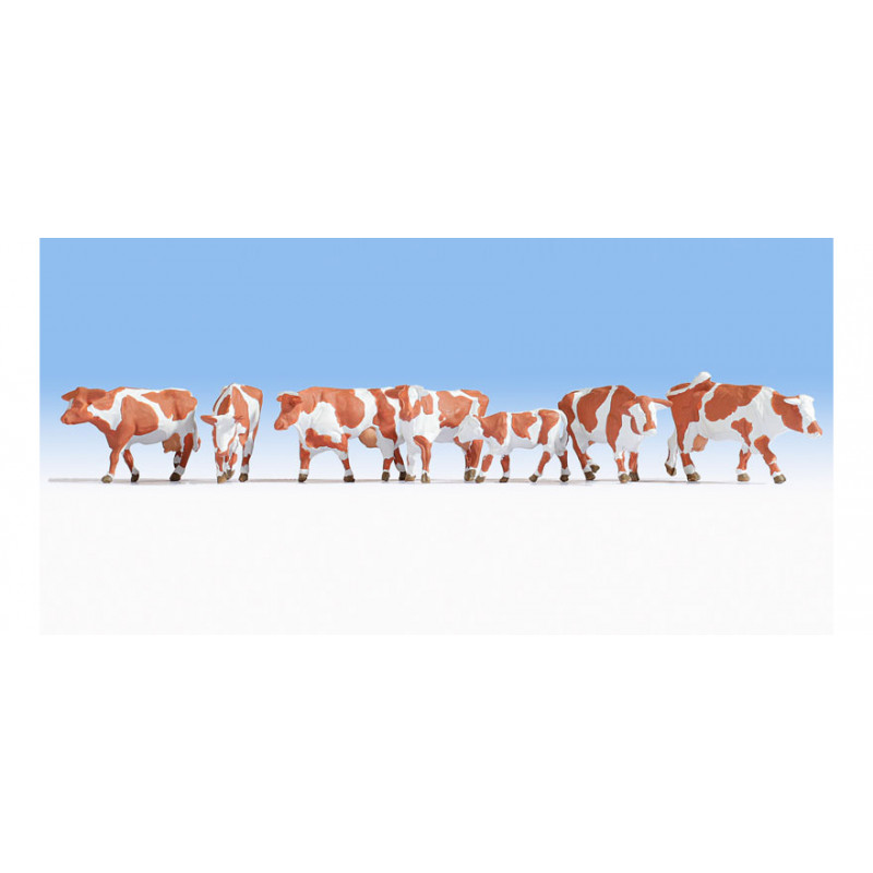 Boîte de 7 Animaux sur le thème des vaches marron et blanche de la marque NOCH à l'échelle 1/87