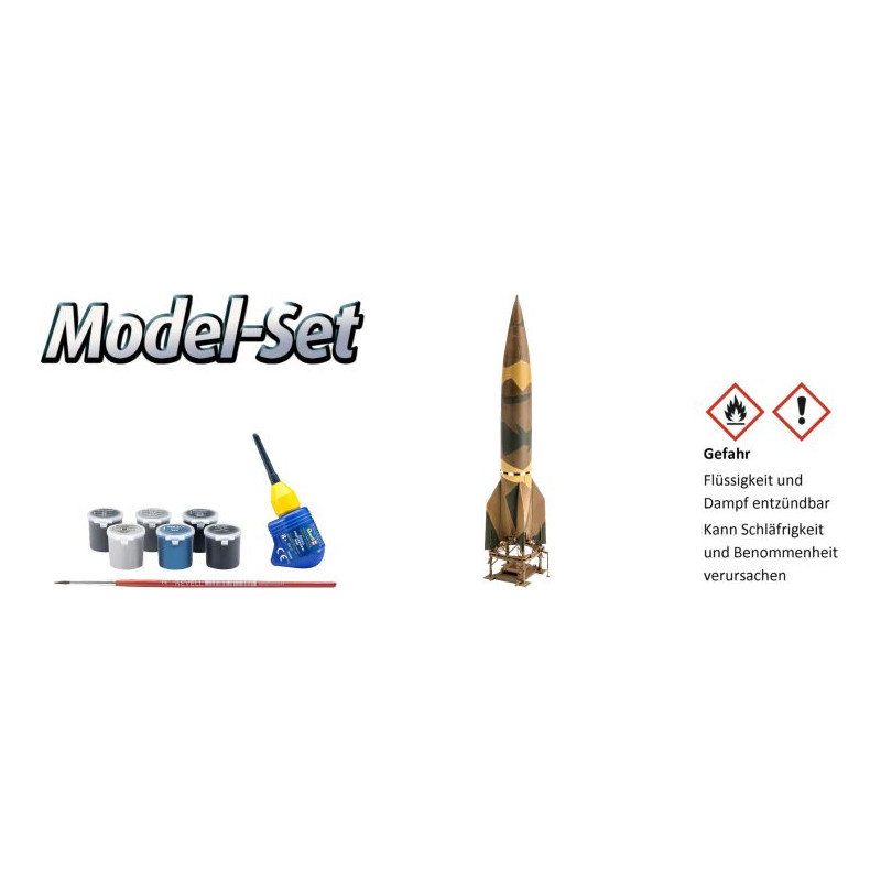 Maquette du Model Set du missile allemand A4/V2 avec rampe de lancement , Kit avec peinture, pinceau et colle de la marque REVELL à l'échelle 1/72