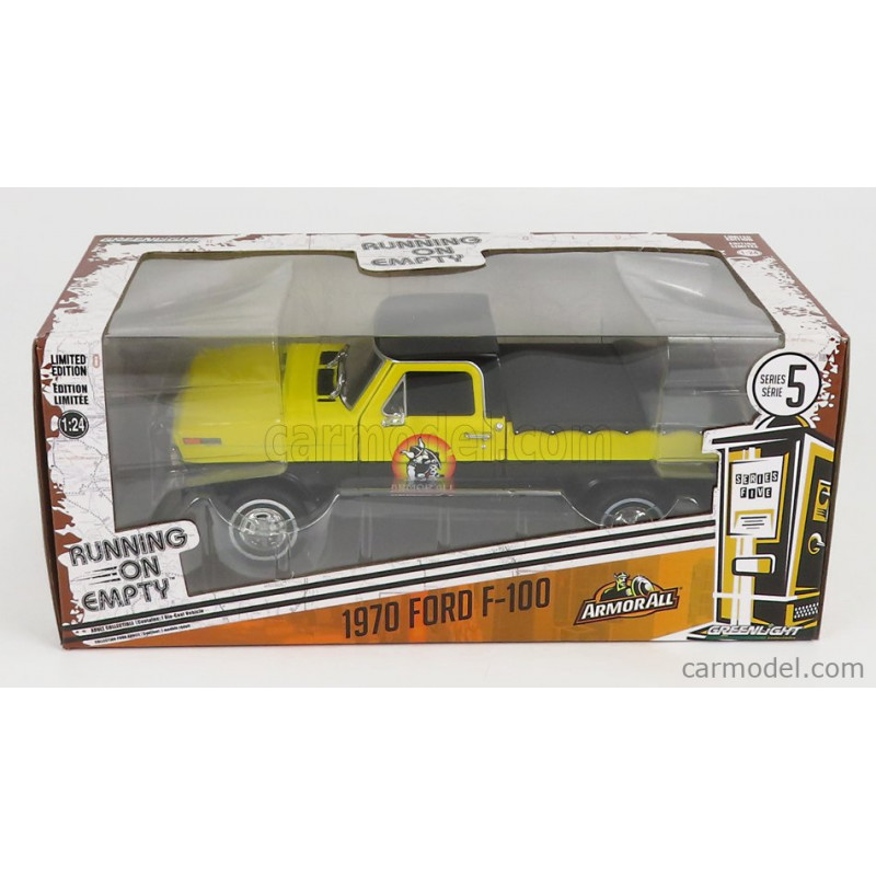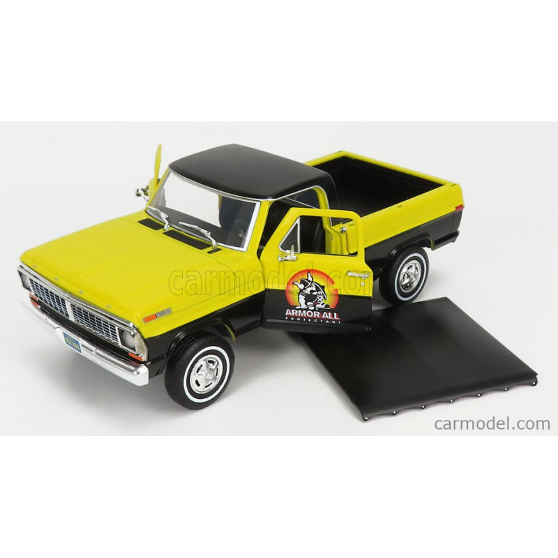 Ford F-100 Truck de 1970 de couleur jaune et noire avec le marquage et le logo ARMOR ALL de la marque GREENLIFHT à l'échelle 1/24