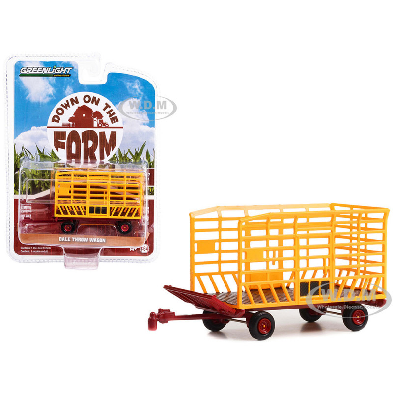 Remorque Bale Throw de couleur jaune et rouge dans la Collection DOWN ON THE FARM de la marque GREENLIGHT à l'échelle 1/64