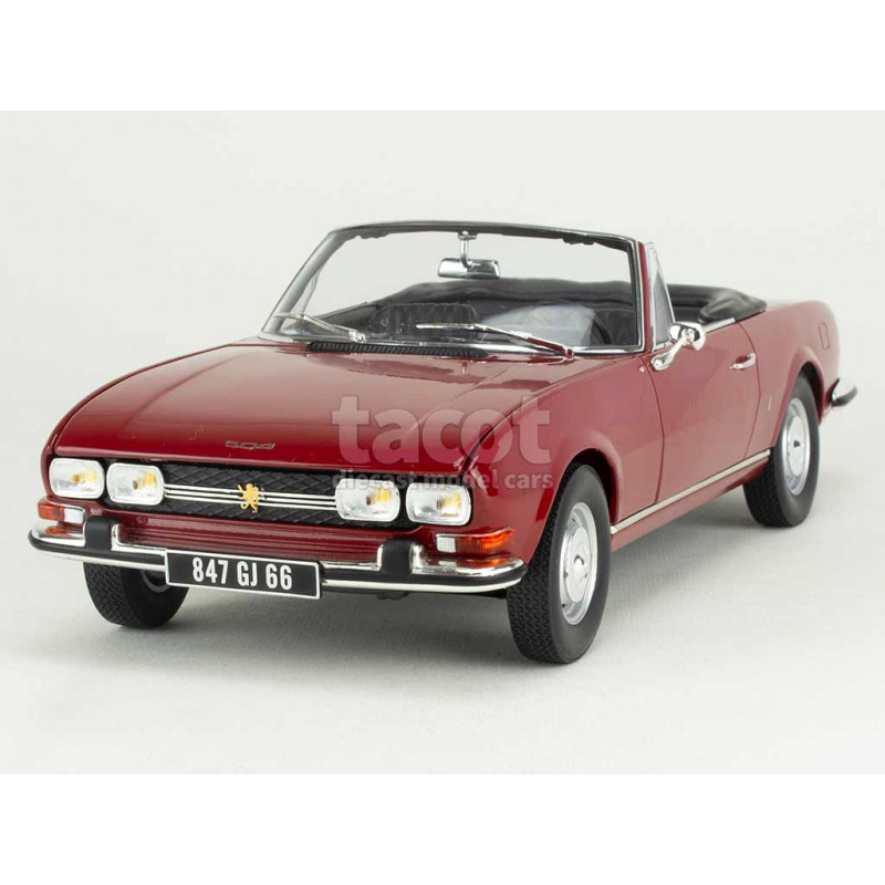 Peugeot 504 Cabriolet de 1972 de couleur rouge foncé de la marque NOREV à l'échelle 1/18