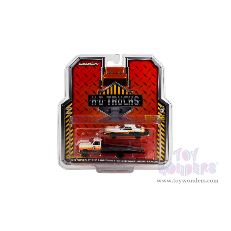 Chevrolet C-30 avec rampe ARMR OIL de 1972 avec Chevrolet Chevelle Laguna ARMOR OIL de 1976 de la marque GREENLIGHT à l'échelle 1/64