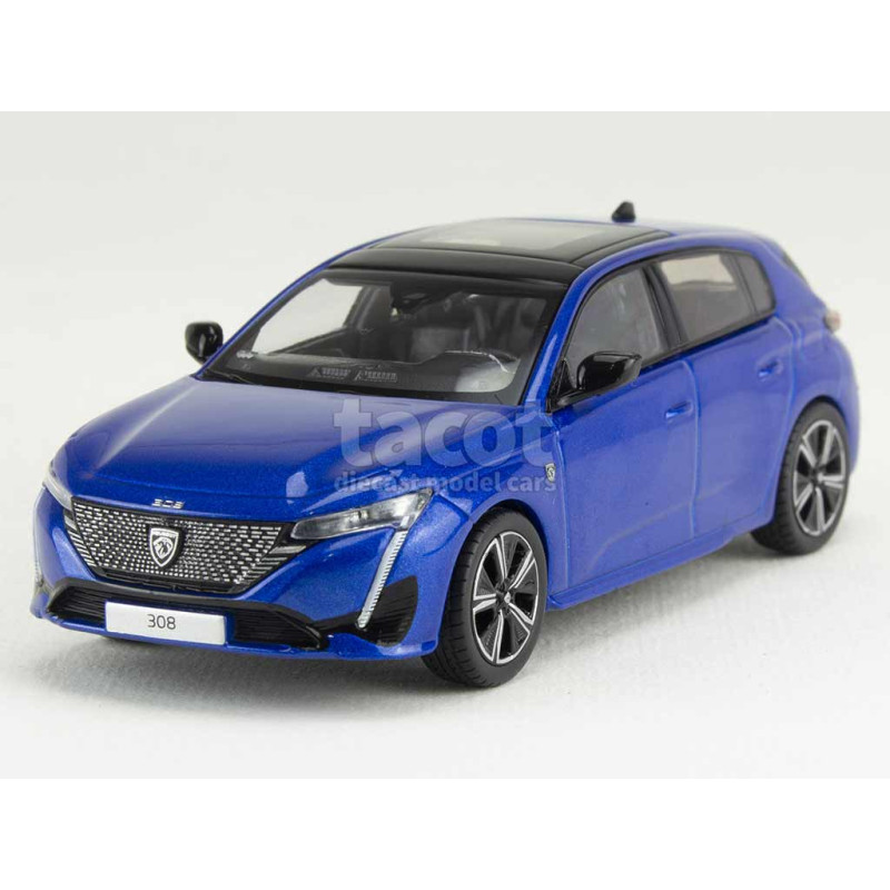 Peugeot 308 GT de 2021 de couleur bleu de la marque NOREV à l'échelle 1/43