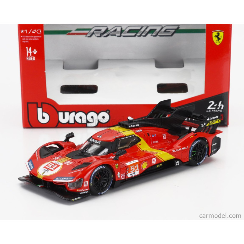 Ferrari 499P 3.0L Turbo V6 TEAM FERRARI AF CORSE N°51 des Pilotes A.PIER GUIDI , JAMES CALADO et ANTONIO GIOVINAZZI des 24H DU MANS de 2023 qui finira 1ER en boitage souple de la marque BURAGO à l'échelle 1/43