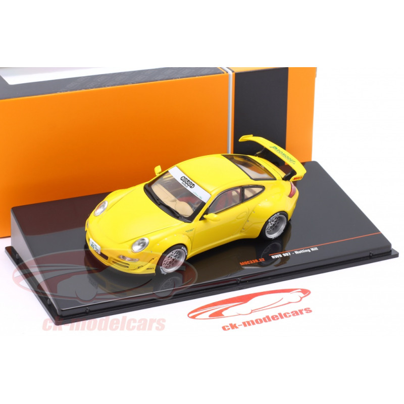 Porsche RWB 997 de couleur jaune de la marque IXO à l'échelle 1/43
