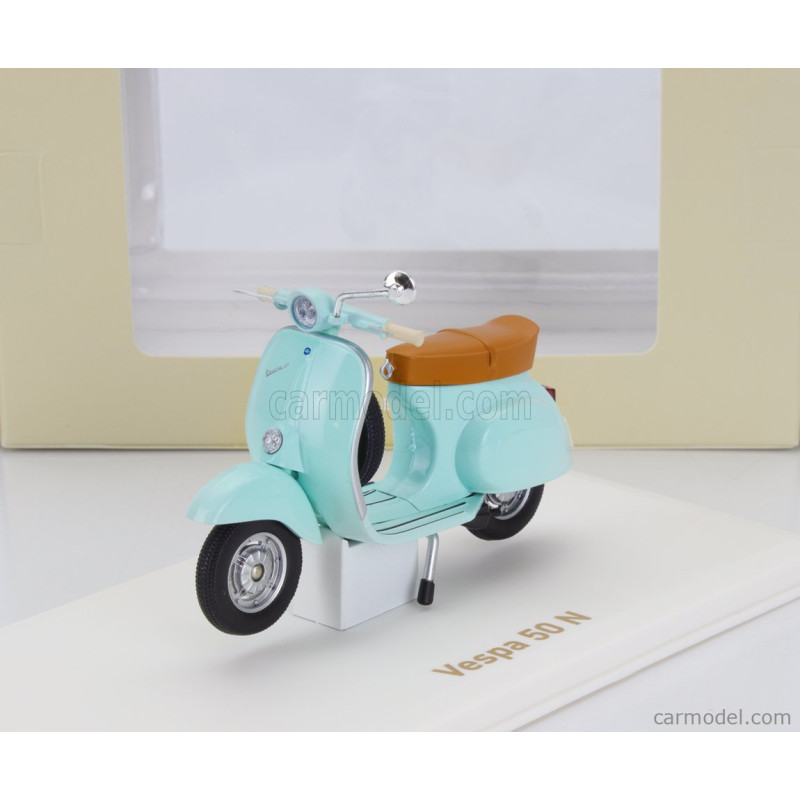 Miniature de la Vespa 50 N de 1969 de couleur bleu ciel de la marque NOREV à l'échelle 1/18