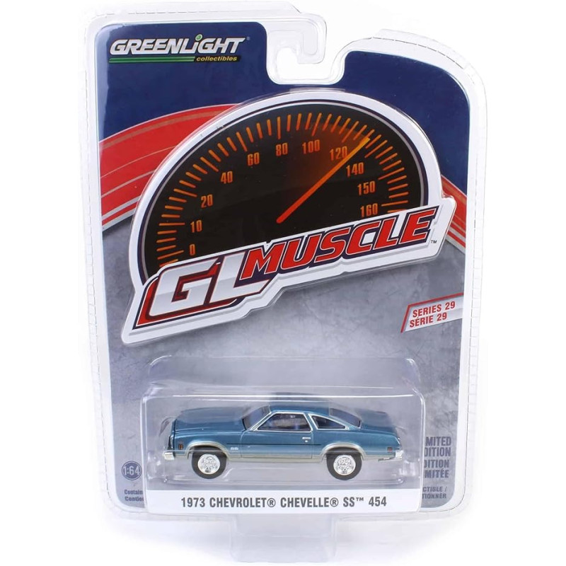 Chevrolet Chevelle SS 454 de 1973 de couleur bleu métallique dans la collection GL MUSCLE de la marque GREENLIGHT à l'échelle 1/64