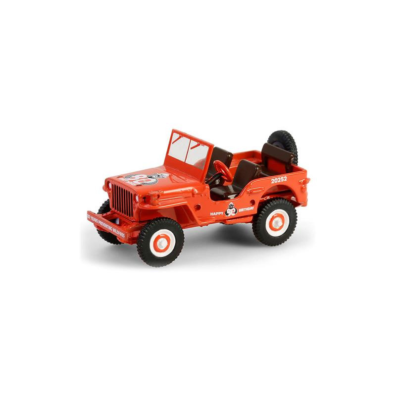 Willys MB de 1944 de couleur orange dans la collection ANNIVERSARY de la marque GREENLIGHT à l'échelle 1/64