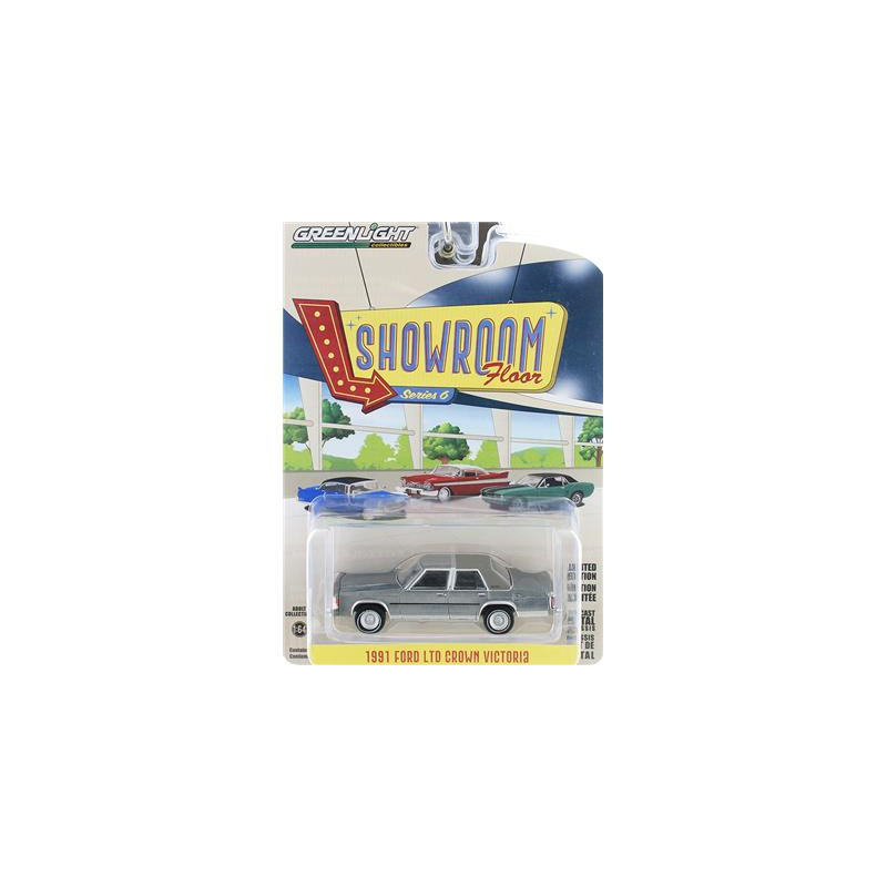Ford LTD Crown Victoria de 1991 de couleur gris dans la collection SHOWROOM FLOOR de la marque GREENLIGHT à l'échelle 1/64