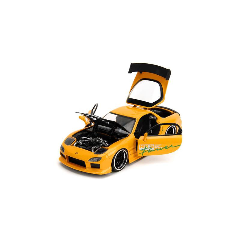 Mazda RX 7 de 1993 de couleur jaune métallique dans la Gamme JDM TUNERS de la marque JADA à l'échelle 1/24