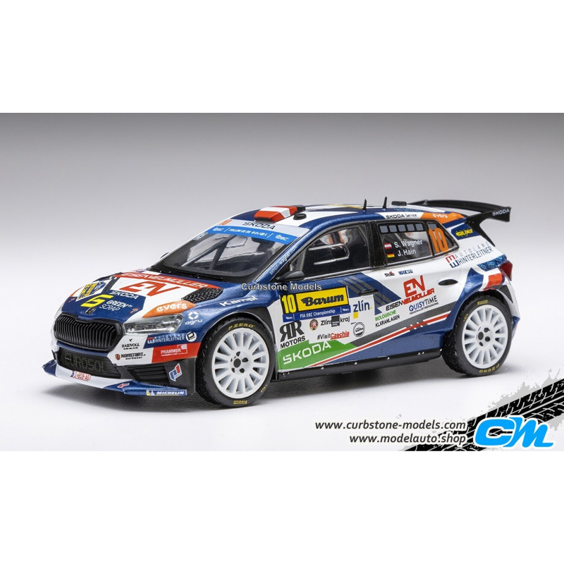 Skoda Fabia Rally 2 N°10 du Pilote WAGNER et du Copilote HAIN du WM RALLYE DE BARUM de 2024 de la marque IXO à l'échelle 1/43