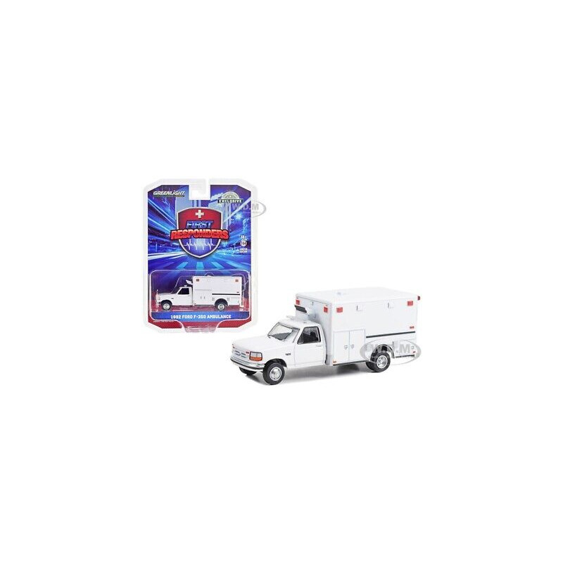 Ford F-350 Ambulance de 1992 de couleur blanc de la marque GREENLIGHT à l'échelle 1/64