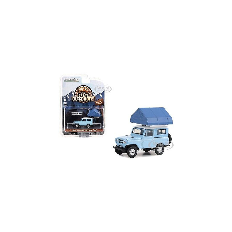 Nissan Patrol de 1969 de couleur bleu clair dans la Collection THE GREAT OUTDOORS de la marque GREENLIGHT à l'échelle 1/64