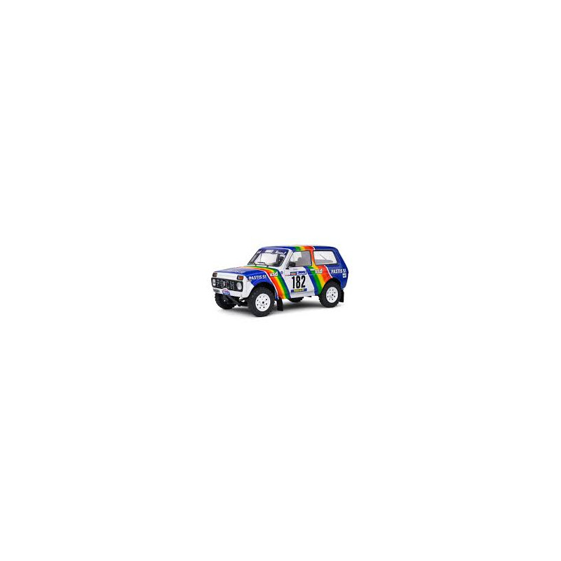 Lada Niva N°182 du Pilote JABOUILLE et du Copilote SARDOU du PARIS DAKAR de 1984 de la marque SOLIDO à l'échelle 1/18