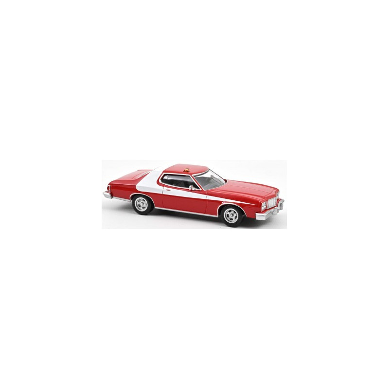 Ford Grand Torino de 1975 de couleur rouge et blanc de la Série TV STARSKY ET HUTCH de la marque NOREV dans la gamme JET CAR à l'échelle 1/43