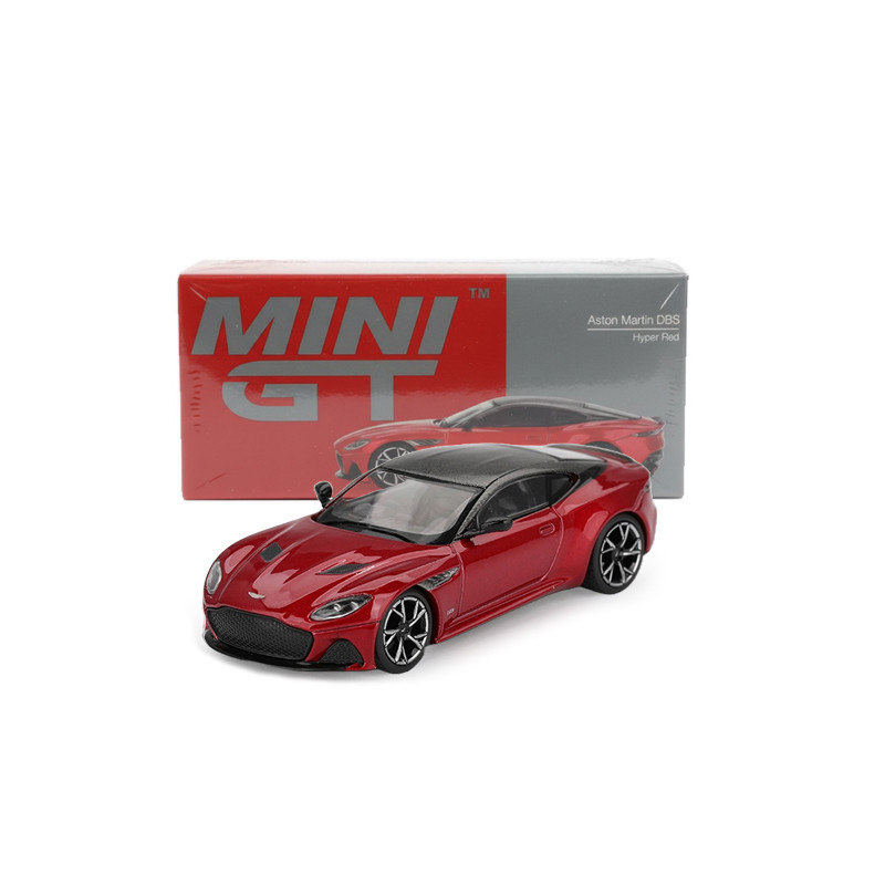 Aston Martin DBS de 2025 de couleur rouge de la marque MINI GT à l'échelle 1/64