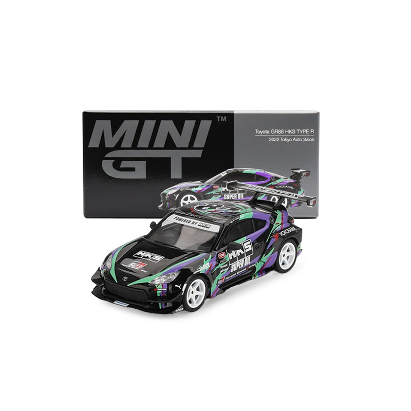 Toyota GR86 HKS Type-R de 2022 en décoration TOJYO AUTO SALON de la marque MINI GT à l'échelle 1/64