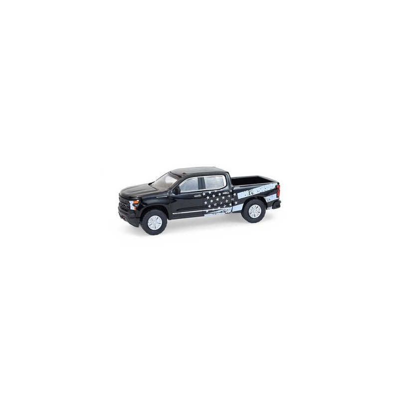 Chevrolet Silverado de 2023 de couleur noire dans la Collection BLUE COLLAR de la marque GREENLIGHT à l'échelle 1/64