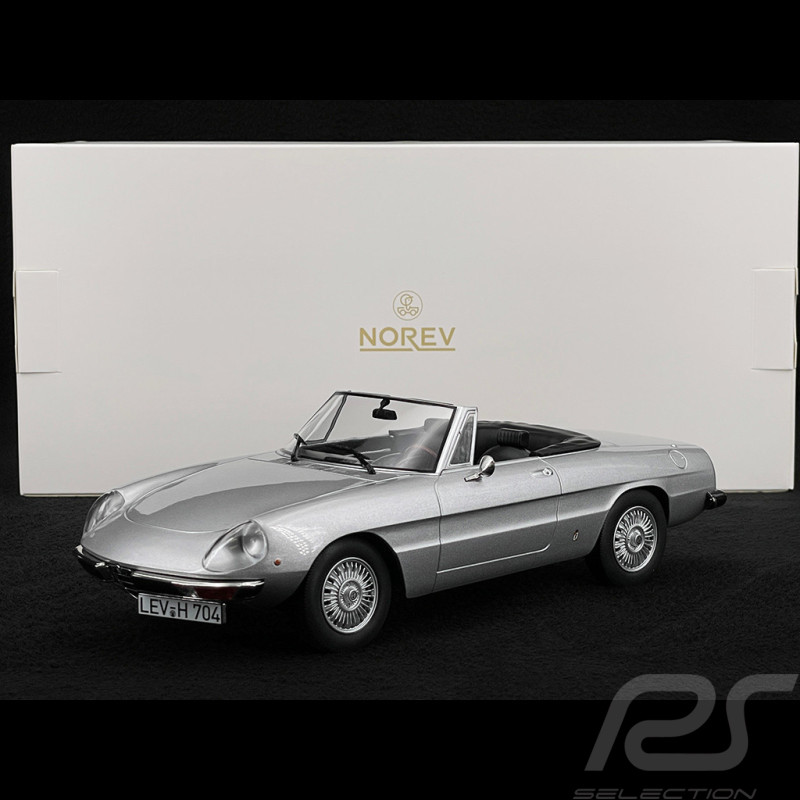 Alfa Roméo 2000 Spider de 1973 de couleur gris clair métallisé de la marque NOREV à l'échelle 1/18