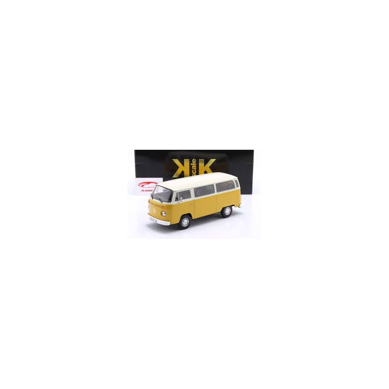 VW Bus T2B de 1972 de couleur jaune et blanc de la marque KK SKALE à l'échelle 1/18