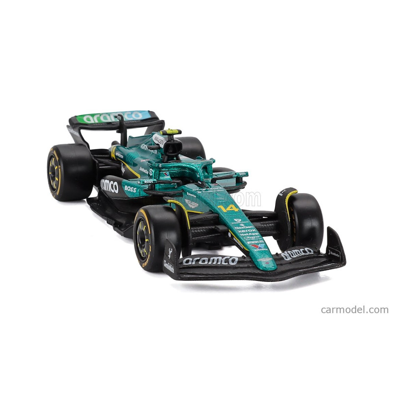 Aston Martin F1 AMR25 Team Aramco Cognizant N°14 du Pilote Espagnol FERNANDO ALONSO de 2025 en boitage souple de la marque BURAGO à l'échelle 1/43