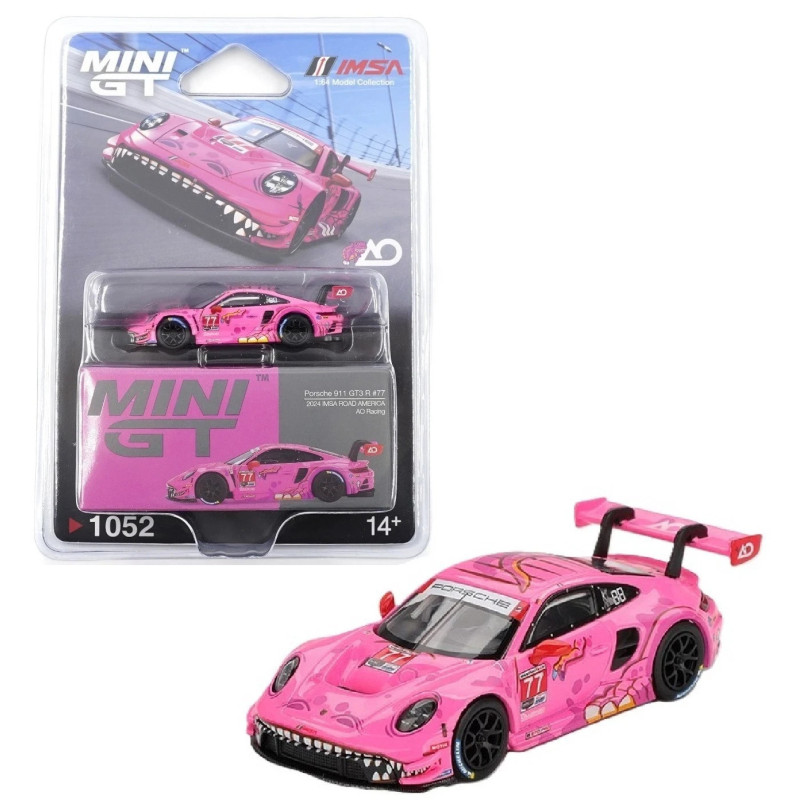 Porsche 911 992 GT3 R N°77 AO Racing Road América de 2024 en Blister Edition de la marque MINI GT à l'échelle 1/64