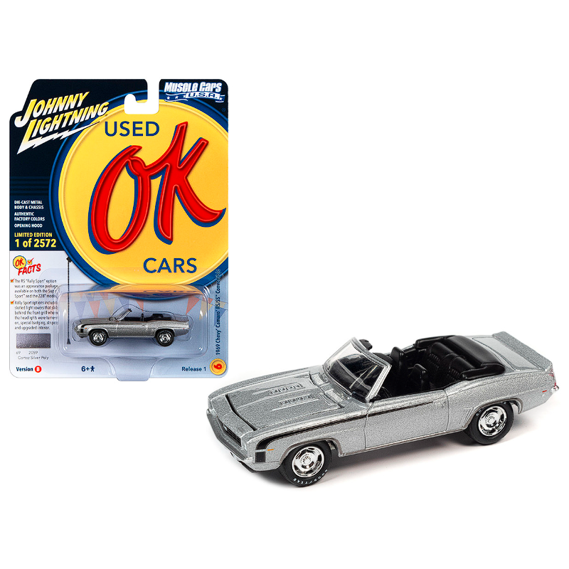 Chevy Camaro RS/SS Convertible de 1969 de couleur argent dans la collection MUSCLE CARS USA de la marque JOHNNY LIGHTNING à l'échelle 1/64