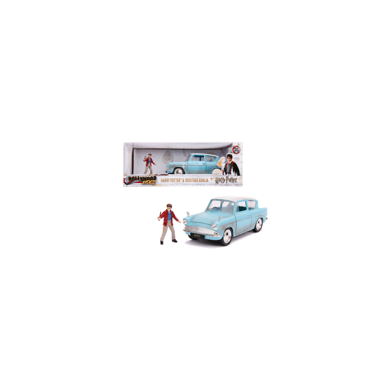 Ford Anglia de 1959 de couleur bleu du Film HARRY POTTER avec figurine HARRY POTTER de la marque JADA à l'échelle 1/24