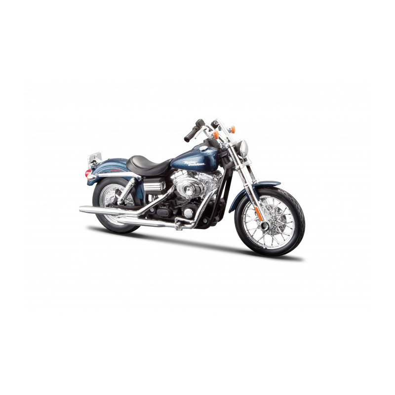 Moto Harley Davidson FXDBI Dyna Street Bob de 2006 de couleur bleu foncé de la marque MAISTO à l'échelle 1/12