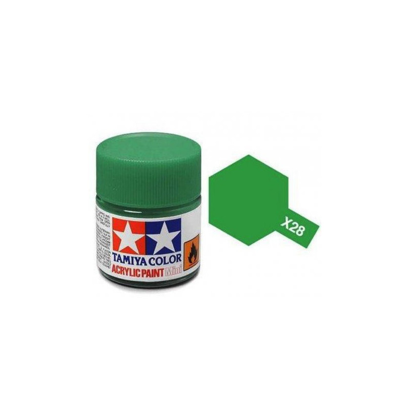 Peinture pour maquette de la marque TAMIYA X28 vert pré brillant de 10mL