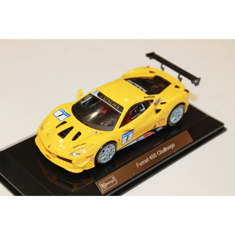 Ferrari 488 CHALLENGE N°1 de couleur jaune de 2017 de la marque BURAGO à l'échelle 1/43