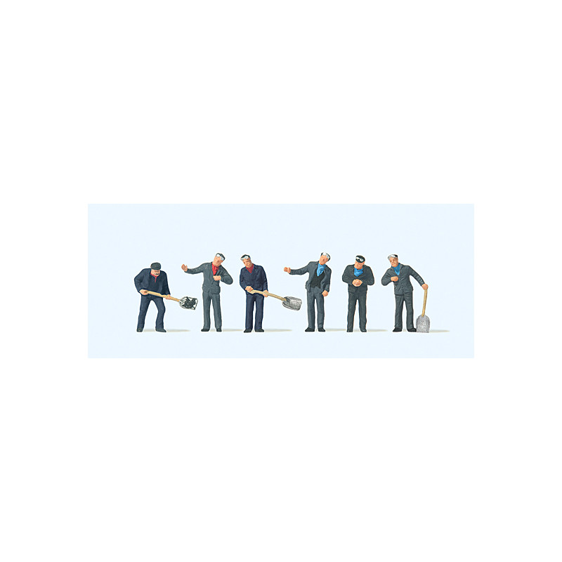 Miniature de 6 figurines de Chauffeurs et conducteurs de locomotive à vapeur de la marque PREISER à l'échelle 1/87