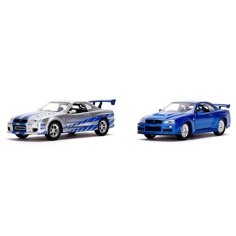 Coffret de 2 voitures Nissan Skyline et Nissan GT-R R34 de BRIAN du film FAST AND FURIOUS de la marque JADA à l'échelle 1/32