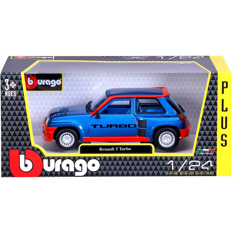 Voiture de la marque burago, modèle Renault 5 Turbo de couleur bleu à l'échelle 1/24ème